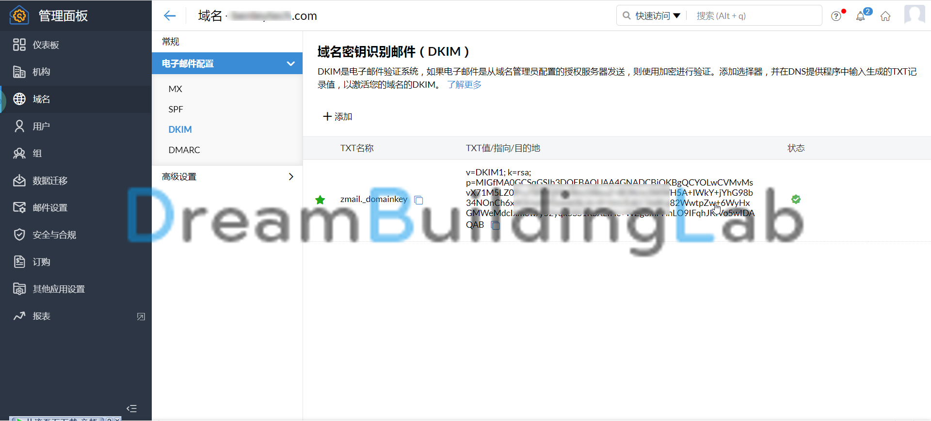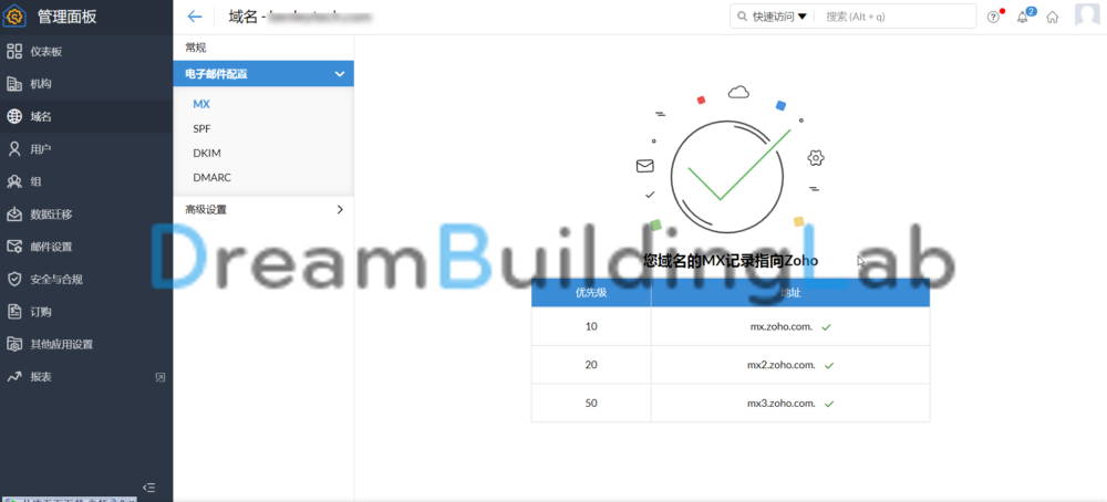 12.最后到域名-电子邮件配置中验证一遍是不是MX记录、SPF记录、DKIM记录都生效了。